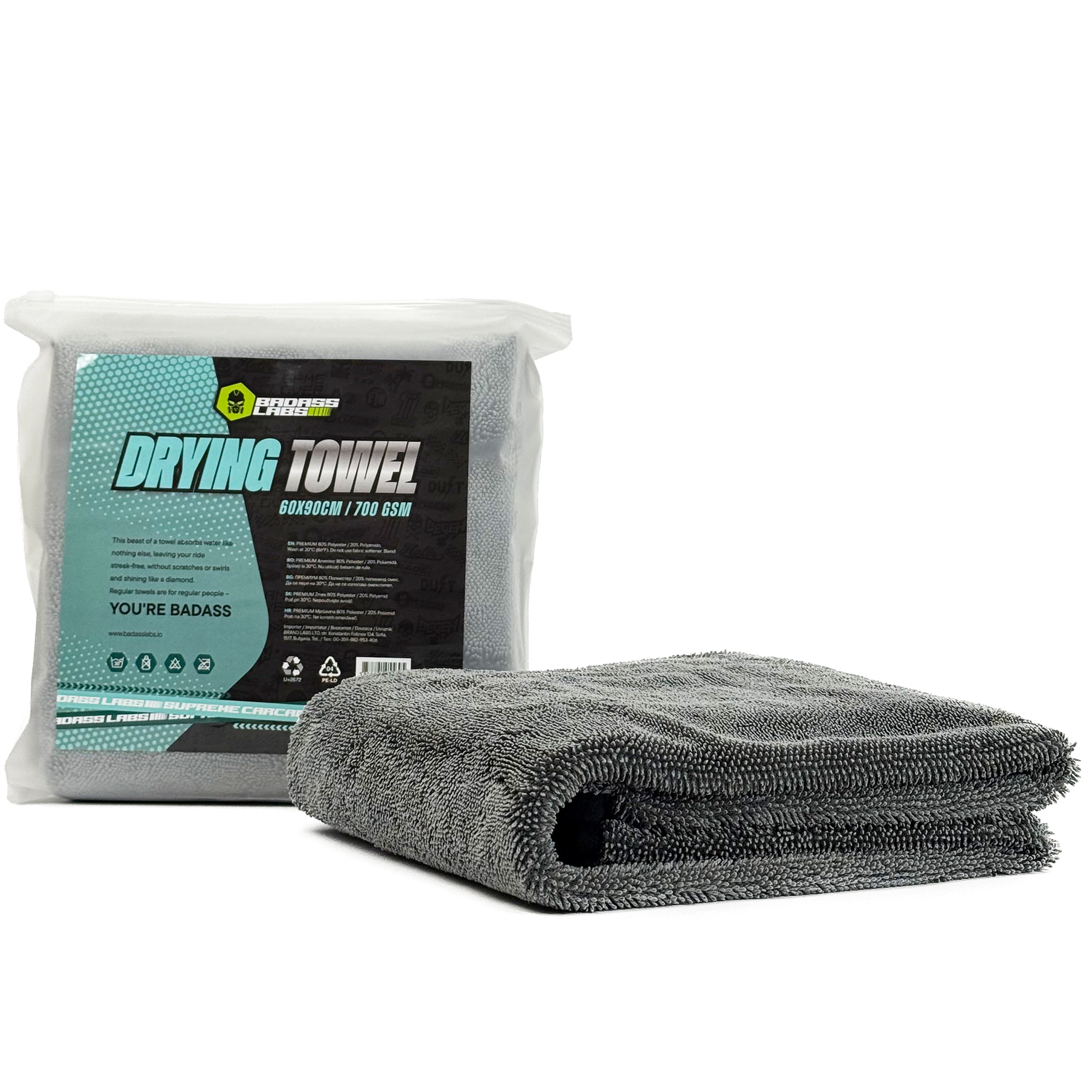 Запознай се с ултра абсорбиращата микрофибърна кърпа за подсушаване от Badass Labs – създадена за перфекционисти, които не правят компромис с грижата за колата си. Изработена от свръх плътен 700 GSM микрофибър с усукани бримки, тази зверска кърпа попива водата по-бързо от всеки друг микрофибър.